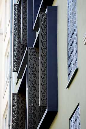 Das Baugrundstück der Agromex besteht aus vier Parzellen und bietet so eine Chance, die urbane Dichte der Umgebung mit ungewöhnlicher Großzügigkeit im Blockinneren zu kombinieren. Um wirklich eigenständige Gebäude zu gestalten, regten die Bauherren einen Büro internen Gestaltungswettbewerb an. So entstehen vier individuelle Gebäude um einen klassisch gestalteten gemeinsamen Garten. Die Kleinteiligkeit der historischen Grundstücksteilung bleibt an der differenzierten Gestaltung der Baukörper und ihrer Fassaden ablesbar.