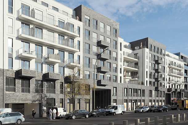 Wir entwickeln zeitgenössische offene Wohngrundrisse und arbeiten weiter an der Formensprache der klassischen europäischen Stadt. Die bestimmenden Materialien sind Klinker und Putz, der Rhythmus der Gliederung verleiht den Fassaden ihren Maßstab.