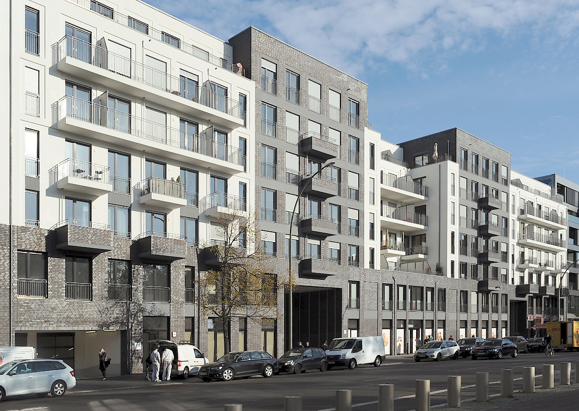 Wir entwickeln zeitgenössische offene Wohngrundrisse und arbeiten weiter an der Formensprache der klassischen europäischen Stadt. Die bestimmenden Materialien sind Klinker und Putz, der Rhythmus der Gliederung verleiht den Fassaden ihren Maßstab.
