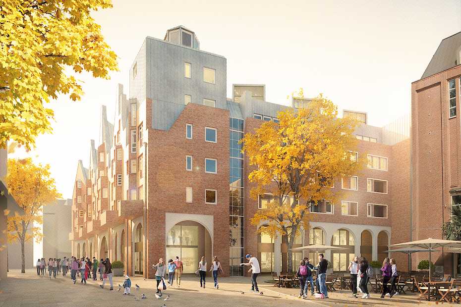 Dabei ist nicht geplant, dass die gesamten Fassaden- und Dachflächen erneuert werden, sondern es sollen gestalterisch wirksame und baulich intakte Bereiche in weiten Teilen erhalten werden. Hierfür hat der Auslober die Fassade durch ein Architekturbüro überprüfen lassen und hat auf dieser Grundlage festgelegt, welche Bereiche zur Disposition stehen und welche Bereiche erhalten werden sollen.