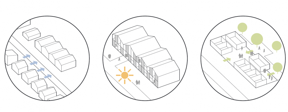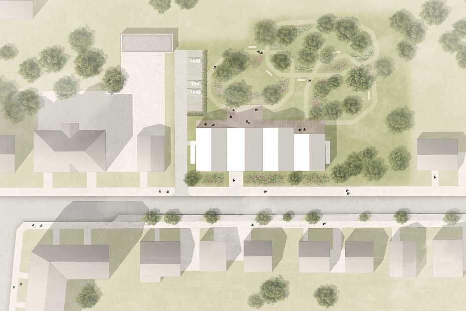 Ziel des Entwurfs ist es, die Bewohner an ihrem letzten Zuhause so gut wie möglich ins Leben zu integrieren, ihnen aber trotzdem die Möglichkeit des Rückzugs zu geben.
