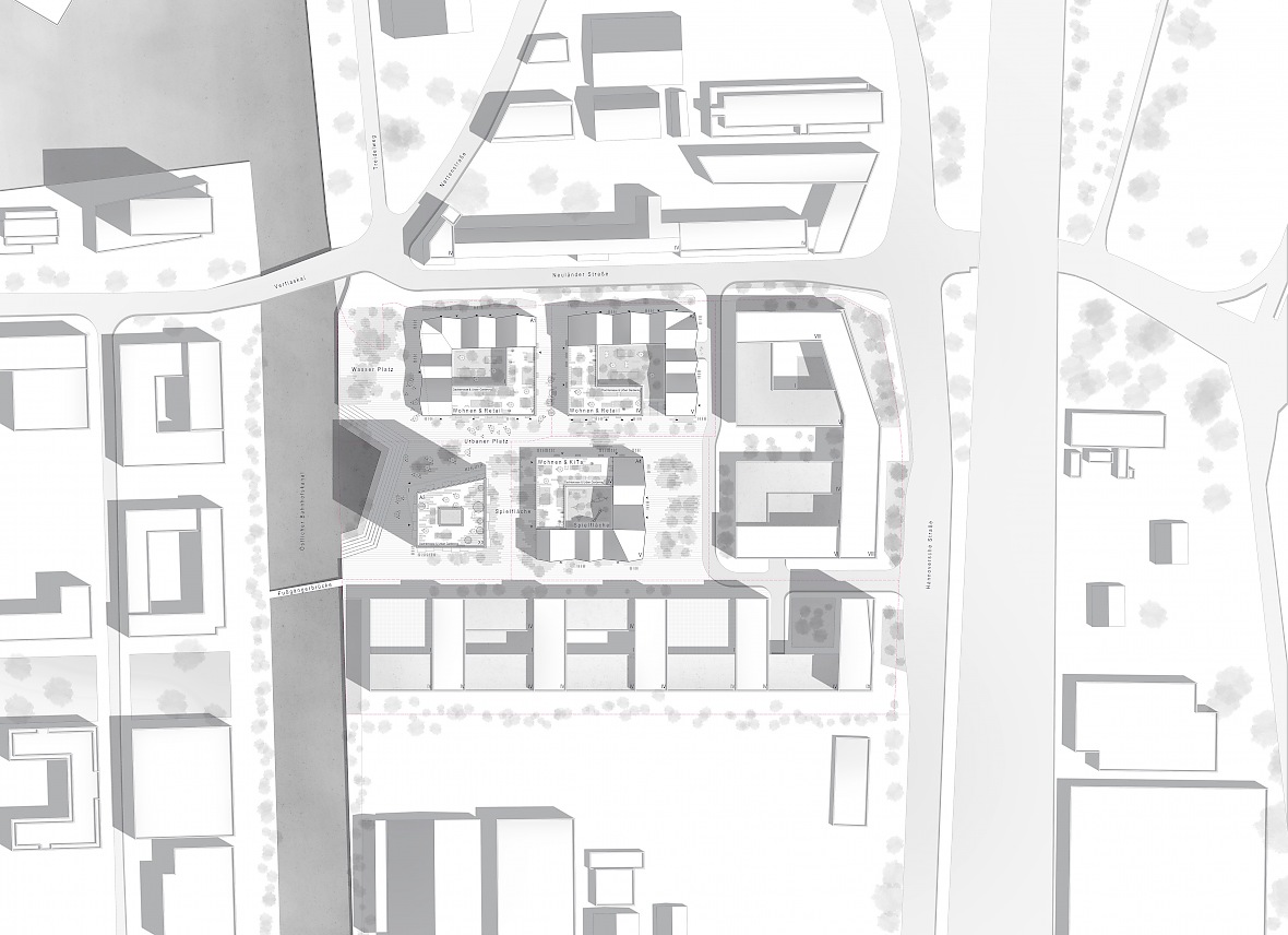 Neubau eines Stadtquartiers mit vier Baukörpern