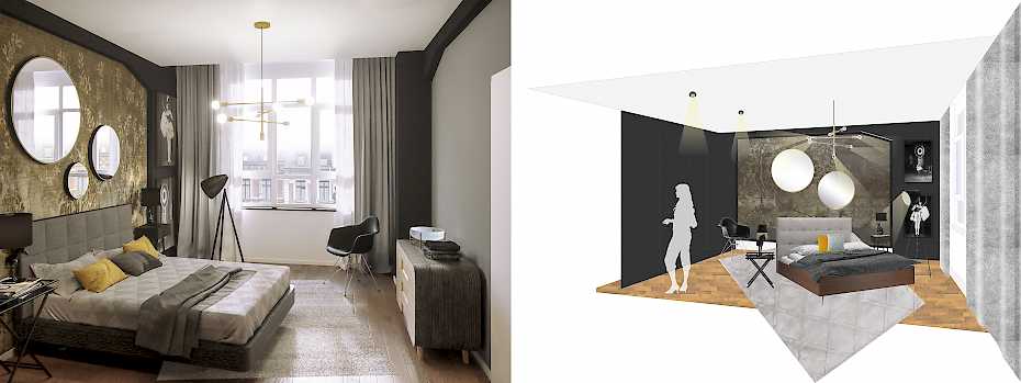 …für ein Konzept, Interiordesign, Geschichte und Architektur in Einklang zu bringen: Die Geschichte des Hauses ehrend und erinnernd wurde in der Innenarchitektur mit Elementen aus Theater und Varieté gearbeitet, die sich in der Verwendung bodenlanger, schwerer Vorhänge, dem Spiel mit Hell-Dunkel-Kontrasten und glänzenden Highlights erkennen lassen. Die Beleuchtung nimmt das Thema Spots auf und interpretiert diese immer wieder neu. Darüber hinaus finden sich dramatische und kuriose Dekorations- und Kunstelemente im ganzen Haus wieder und lassen das Haus somit einerseits gemütlich und wohnlich wie gemütliche Theatersessel wirken, anderseits blitzt der Glamour vergangener Varietézeiten auf.