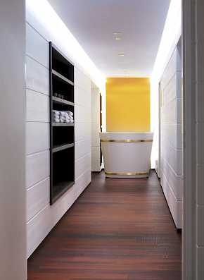 Das 4-Sterne Parkhotel in Meißen erweitert sein Serviceangebot um einen SPA Bereich. Die Herausforderung bestand darin, trotz räumlicher Begrenzung ein Konzept zu finden, welches den Besucher in die Welt der Entspannung entführt und die Einzigartigkeit des Ortes – den Ausblick auf die Albrechtsburg – inszeniert. Hierfür wurde der „Verduta“-SPA in drei Bereiche eingeteilt: Der Empfang und die Behandlungsräume erinnern mit ihrem dunklen Schiffsdielenboden und Messingbullaugen an die Ästhetik der Elberaddampfer. Für ein Gefühl wie Häuser am Meer mit Frische und Luftigkeit sorgen die weißen, holzverkleideten Wände, welche auch die notwendigen Einbaumöbel und Türen zusammenfassen. Alle Wellness-Behandlungsräume fokussieren außerdem mithilfe von Motivtapeten den Blick auf die Raumdecke – das Auge verweilt wie bei einem Trompe-l’oeil. Der dunkel gehaltene Sauna-Bereich hingegen stellt die rauen Naturelemente in den Mittelpunkt: Hitze, Dampf, Wasser und Eis. Die Wärme der finnischen Sauna aus Altholz trifft dabei auf die Kühle des Eises und des schroff gespaltenen Quarzits. Ruhe und Privatheit bieten die Kojen aus gewaschenem Rohleinen mit einem unverwechselbaren Ausblick auf die Elbe und die Burg.