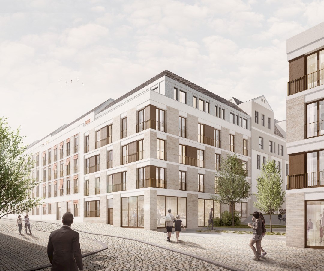 Alle Wohnungen sind kompakt geplant und ermöglichen somit einen bezahlbaren Wohnraum. Die Wohneinheiten sind barrierefrei zugänglich und haben über den Aufzug eine Anbindung an den Kellerbereich, in dem neben weiteren Fahrradstellplätzen, Räume für Kinderwagen, Rollatoren und Rollstühlen, Abstellräume für die Wohneinheiten angeordnet sind. Von den insgesamt maximal 334 Wohneinheiten werden knapp ca. 28 als Betreutes Wohnen und 87 Wohneinheiten als Clusterwohnen ausgebildet. Durch den angepassten Wohnungsschlüssel wird das Gebiet für alle Nutzergruppen attraktiv und ermöglicht ein generationsübergreifendes Zusammenleben. Durch die Flexibilität der Grundrisse können auf die Wünsche der Bauherren im weiteren Planungsprozess eingegangen werden und aus den betreuten Wohnen sowie aus den Clusterwohneinheiten in eine reine Wohnnutzung gewechselt werden.
